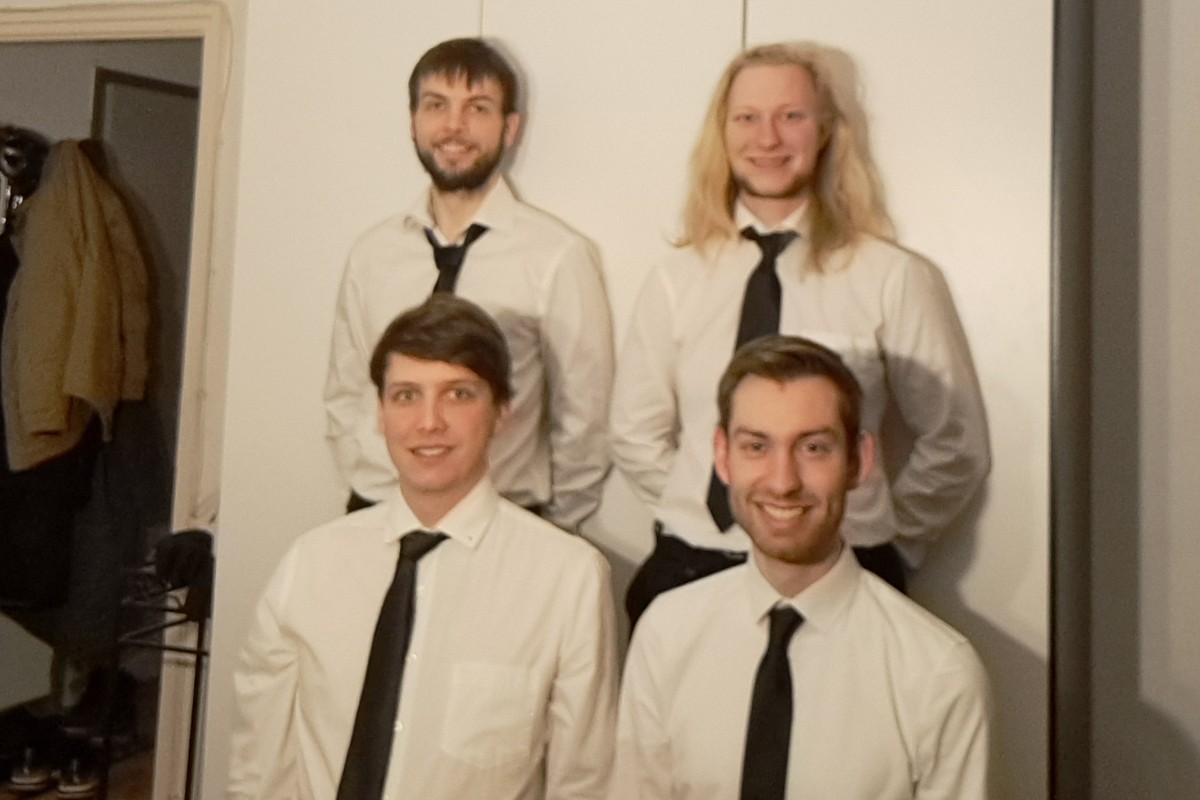 Am Anfang eines jeden Quartetts steht bekanntlich die Frage nach dem Namen. Nach langen Diskussionen, vielen Vetos (leider ist der Name „Veto“ schon lange vergeben) kam irgendwann die Idee: Wenn wir schon so oft nicht im ganzen Quartett proben konnten, weil immer mal jemand anderes keine Zeit hatte, uns in der Probe somit nur 3/4 anwesend waren, kam dann irgendwann die Idee: Wir nennen uns einfach 3/4 anwesend.